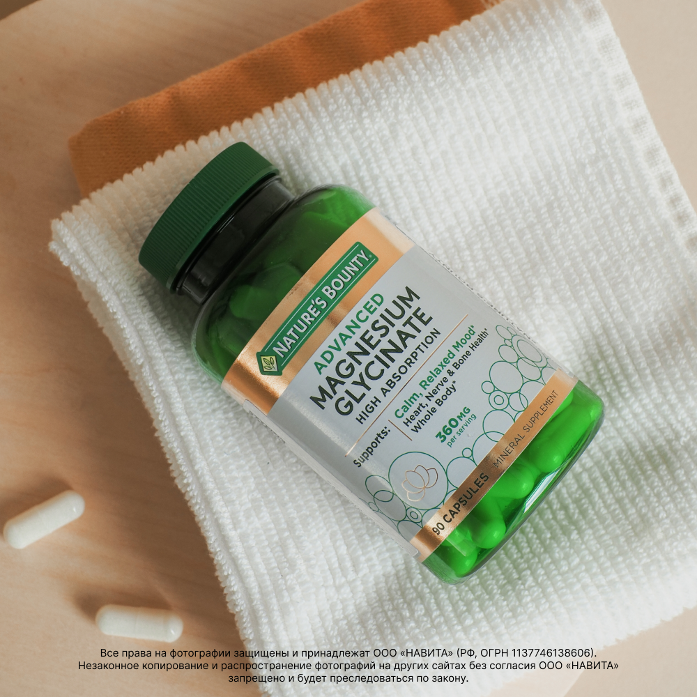 - Хелатная, насыщенная глицином форма магния – магния глицинат, легко усваивается, обеспечивая усиленную поддержку нервной системе.